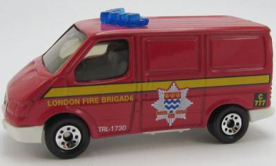 Body: red, blue roof light, with TRANSIT at rear, LONDON FIRE BRIGADE, yellow stripe tampo