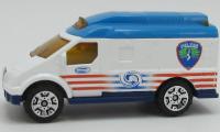 Body: white, light blue roof, POLICE, orange stripes tampo
