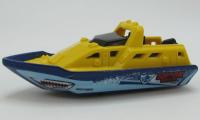Body: metallic blue hull, dark yellow deck, SHARK WEEK tampo
