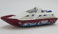 Body: metallic dark red hull, white deck, SHARK WEEK 15 tampo