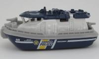 Body: white, gray deck, dark blue roof, HARBOR POLICE tampo
