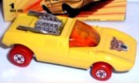 Body: yellow, chrome engine, small MOD ROD at rear, medium brown wildcat head deco