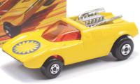 Body: yellow, chrome engine, large MOD ROD at rear, spotted cat head deco
