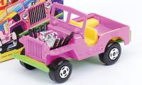 Body: pink, silver engine, black exhausts, long rear panel, green bumpers