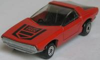 Body: metallic red, large holes, flat trunk edge rear casting, star and flame label with black circle (straight top) deco