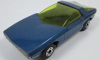 Body: metallic blue, large holes, flat trunk edge rear casting, star and flame label with blue circle (straight top) deco