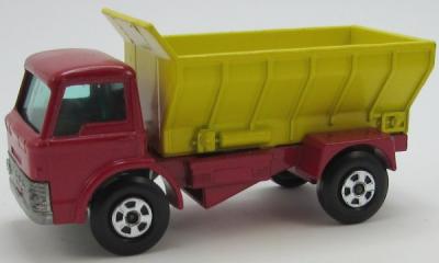Description: red cab chassis, bright yellow dump