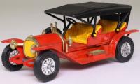 Body: dark red, black chassis, orange-yellow roof, yellow grille