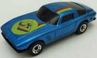 metallic blue, 57 in light lime circle on hood, light lime and dark red stripes