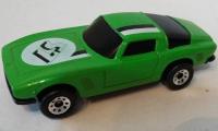57 in dark lime circle on hood, dark lime and dark red stripes