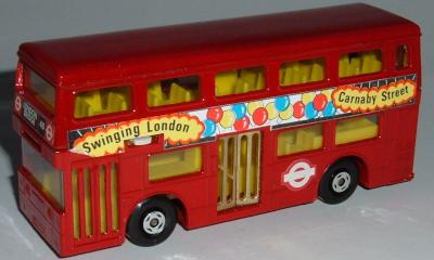 yellow, yellow lower deck, 1 2 3 4 & blue / red stripe sides and SAVE THE CHILDREN roof tampo