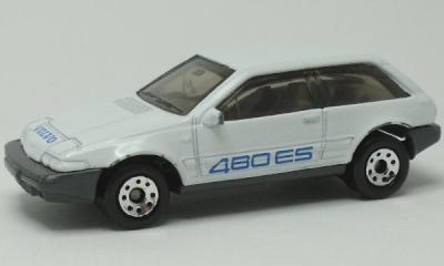 white, VOLVO on hood, 480ES on sides, black stripe at rear