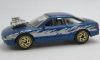 metallic blue, chrome engine, silver flames, detailed trim, license BLUBYU
