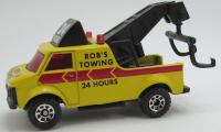 silver-gray, black boom roof mount, black tow hook, ROB'S TOWING 24 HOURS