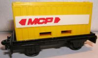 plastic container, black separate base with "P.S.1 cardboard container, lettering printed on sidesONTAINER" lettering