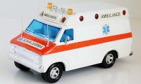 white, orange painted, reversed AMBULANCE, blue & white medical cross