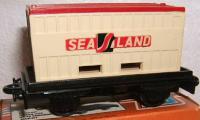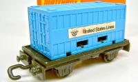 | flat black, medium blue plastic, UNITED STATES LINES |