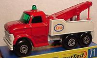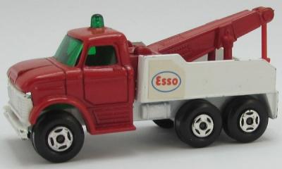 white, green roof light, red cab, yellow hook, ESSO in thick oval
