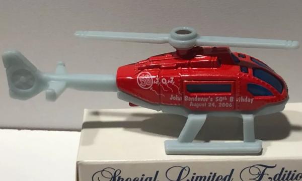 light red, gray blades, JOHN BENDEVER'S 50TH BIRTHDAY tampo |