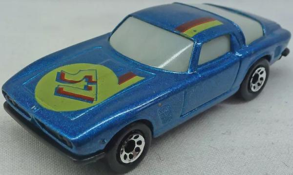 metallic blue, 57 in lime circle on hood, lime and dark red stripes |