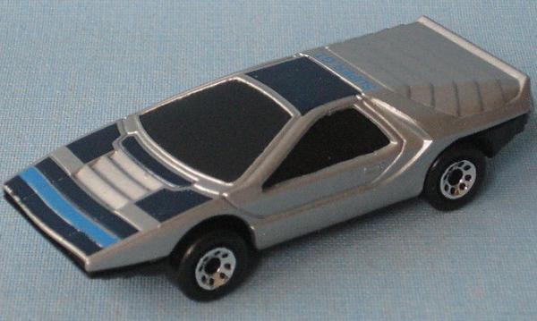 | pearly silver, SUPER GT on roof, medium and navy blue stripes |