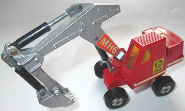 red, silver-gray arm, silver-gray shovel, yellow and black O&K labels |