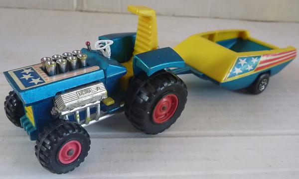 metallic blue, yellow grille, stars & stripes labels, metallic blue trailer |