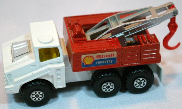 white cab, white chassis, red rear section, SHELL RECOVERY labels |