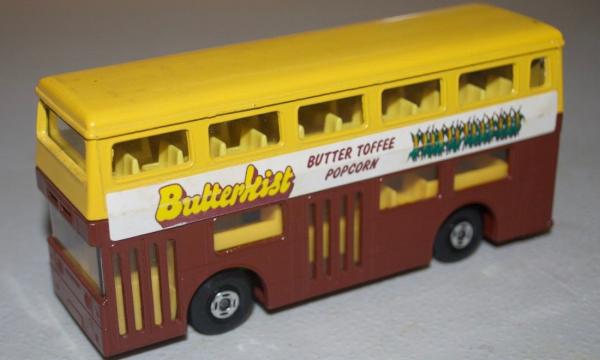 yellow upper, yellow brown lower, BUTTERKIST BUTTER TOFFEE POPCORN labels |