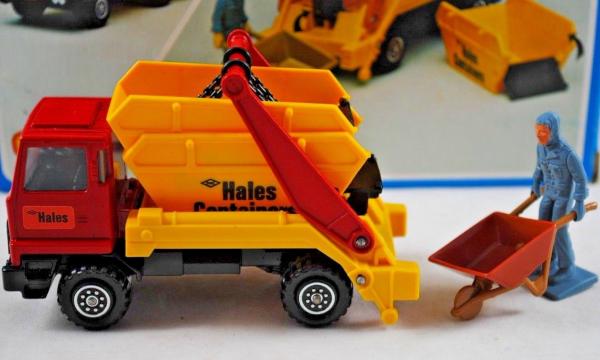 red cab, yellow containers, HALES labels |