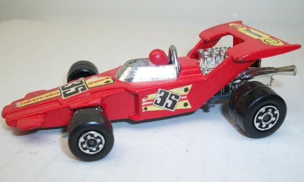 red, 35 TEAM MATCHBOX hood label, irregular 35 side labels, FIRESTONE spoiler label |