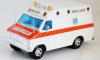 white, orange painted hood, orange painted side stripe, reversed AMBULANCE hood label, blue & white medical cross side labels |