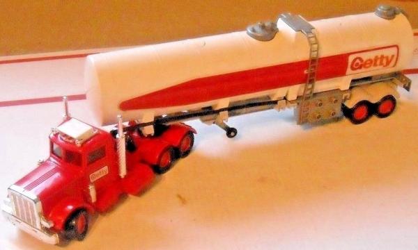 red cab, red chassis, white plastic tank, light gray chassis, GETTY labels |