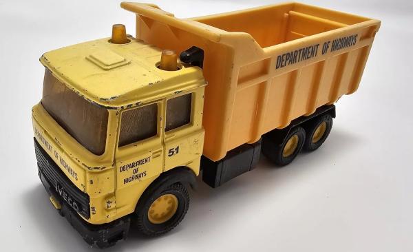 orange-yellow, black chassis, orange-yellow dump, DEPARTMENT OF HIGHWAYS tampo |