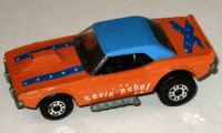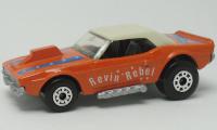 orange, blue, REVIN' REBEL sides, blue stripes hood and trunk, 7 stars at rear