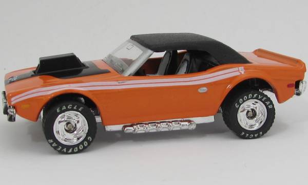 orange, black roof, no license plate, silver plastic bumpers and grille, white stripes, black hood, detail trim, license COOL RT tampo |