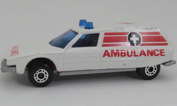 white, blue roof lights, white tailgate, no tailgate bar, AMBULANCE tampo |