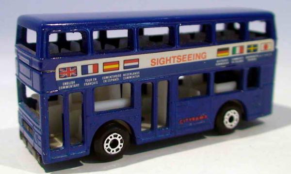 dark blue, 7 lines on rear grille, small tail lights body casting, SIGHTSEEING CITYRAMA deco |