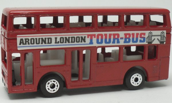 red, 7 lines on rear grille, small tail lights body casting, AROUND LONDON TOUR-BUS deco |