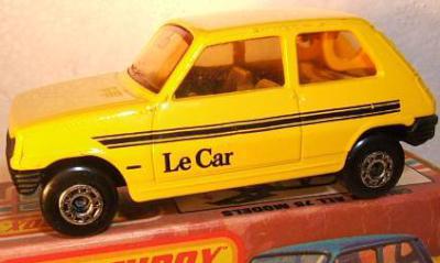 yellow, yellow tailgate, with ribs at rear, black LE CAR tampo |