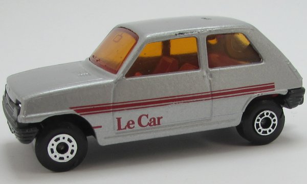 silver-gray, gray tailgate, with ribs at rear, red LE CAR tampo |