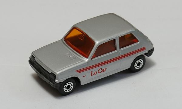 silver-gray, gray tailgate, with ribs at rear, red LE CAR tampo |