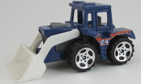 bright blue, gray engine, white shovel, no tow hook, MATCHBOX 24 tampo |