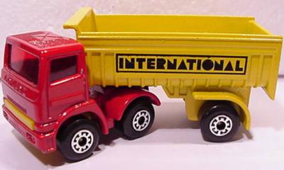 red cab, yellow dump, with LEYLAND cast, with cast panel, INTERNATIONAL tampo |