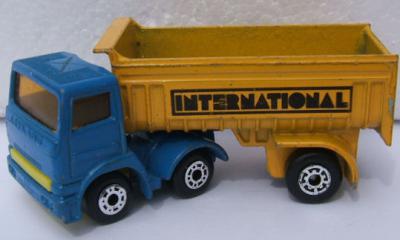 Body bright blue cab, yellow dump, with LEYLAND cast, with cast panel, INTERNATIONAL tampo