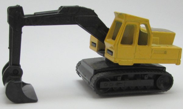 yellow, gloss black platform, black arm, black shovel scoop, long stack, with raised door step, black stripes with C CAT tampo |