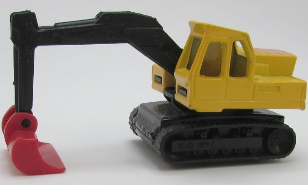 yellow, casting B, gloss black platform, black arm, red shovel scoop, short stack, no raised door step, red stripes tampo |
