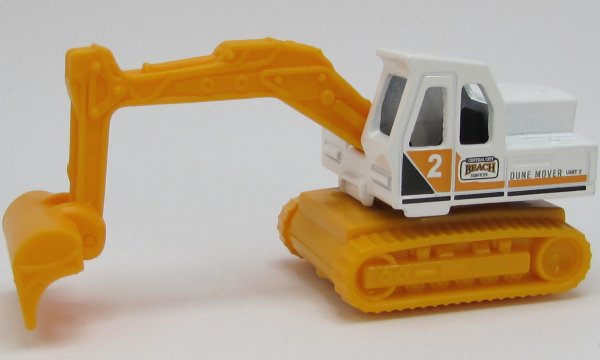 white, orange platform, orange arm, orange shovel scoop, no stack, with raised door step, 2, small lettering and DUNE MOVER tampo |