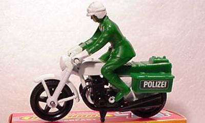 white, black engine, green rider, with rider painted, green seat, POLIZEI (wide) deco |