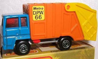 blue, orange dump, yellow hatch, red trigger, with CAUTION at rear, with COLECTOMATIC at front of dump, METRO deco |